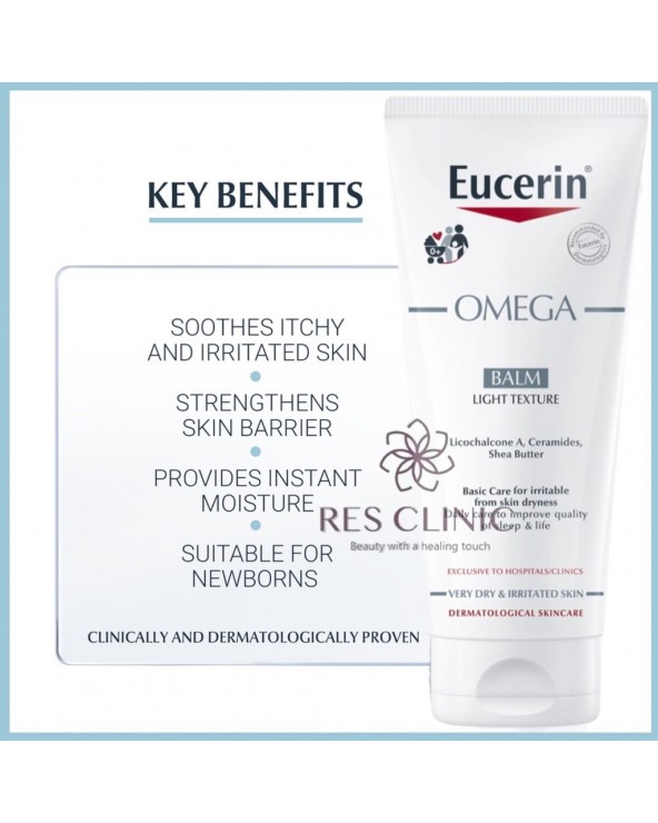 The balm for very dry & irritable skin provides instant moisture to make skin soft and smooth and, with regular application, skin condition noticeably improves. Eucerin OMEGA Balm has been clinically and dermatologically proven to support sleep and improve quality of life for those with very dry & irritated skin.