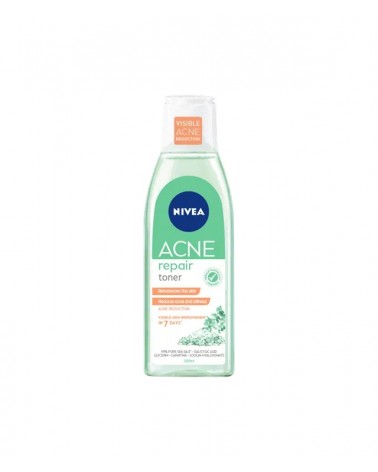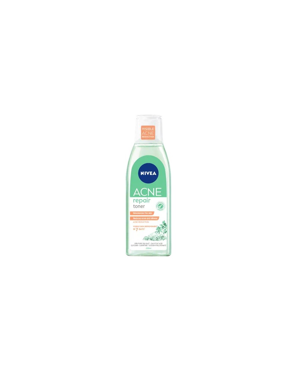 NIVEA Acne Repair Toner can effectively reduces acne & oiliness with visible skin improvement in 7 days. It helps to rebalance the skin in 5 ways with the combination of 5 powerful ingredients: 1. 99% PURE SEA SALT - Promotes skin renewal 2. GLYCERIN – Softens skin 3. SALICYLIC ACID – Helps skin exfoliation 4. CARNITINE – Controls oiliness 5. SODIUM HYALURONATE – Adds moisture to skin