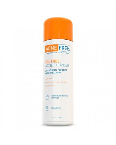 Acne Free Oil Free Acne Cleanser is formulated with 2.5% micronized benzoyl peroxide that quickly and deeply penetrates pores to help clear blemishes and prevent new ones from forming. Suitable for face and body, this fragrance-free acne wash also features ceramides to nourish the skin and help it hold on to moisture. To complete your body anti-acne regimen, follow with Acne Free Body Clearing Spray.