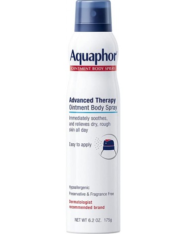 Aquaphor® Ointment Body Spray is a breakthrough innovation that immediately soothes, and relieves dry, rough skin all day. This cooling spray is easy to apply and leaves skin feeling soft and smooth. Unlike a spray lotion, the ointment is water-free and locks in moisture to keep skin hydrated. The spray moisturizer is ideal for arms and legs and even sprays upside down.