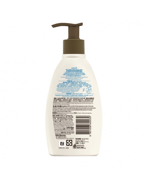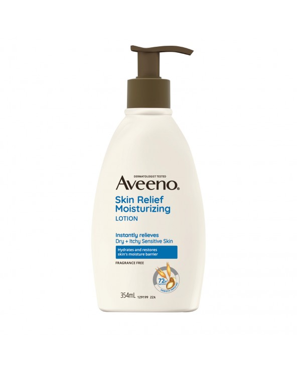 AVEENO® Skin Relief Moisturizing Lotion is rich yet fast-absorbing and starts to work immediately to nourish and restore essential moisture, so your skin feels softer and healthier. Formulated with Triple Oat Complex with oat oil and shea butter, this lotion for sensitive skin clinically provides long-lasting hydration for 72 hours*. It’s also fragrance-free, steroid-free, non-comedogenic and formulated without parabens, drying alcohol and dyes. It is gentle enough for extra-dry, itchy sensitive skin. Plus, the bottle is made from 30% Post-Consumer Recycled Plastic, in our drive to stronger commitment to the betterment of our planet.