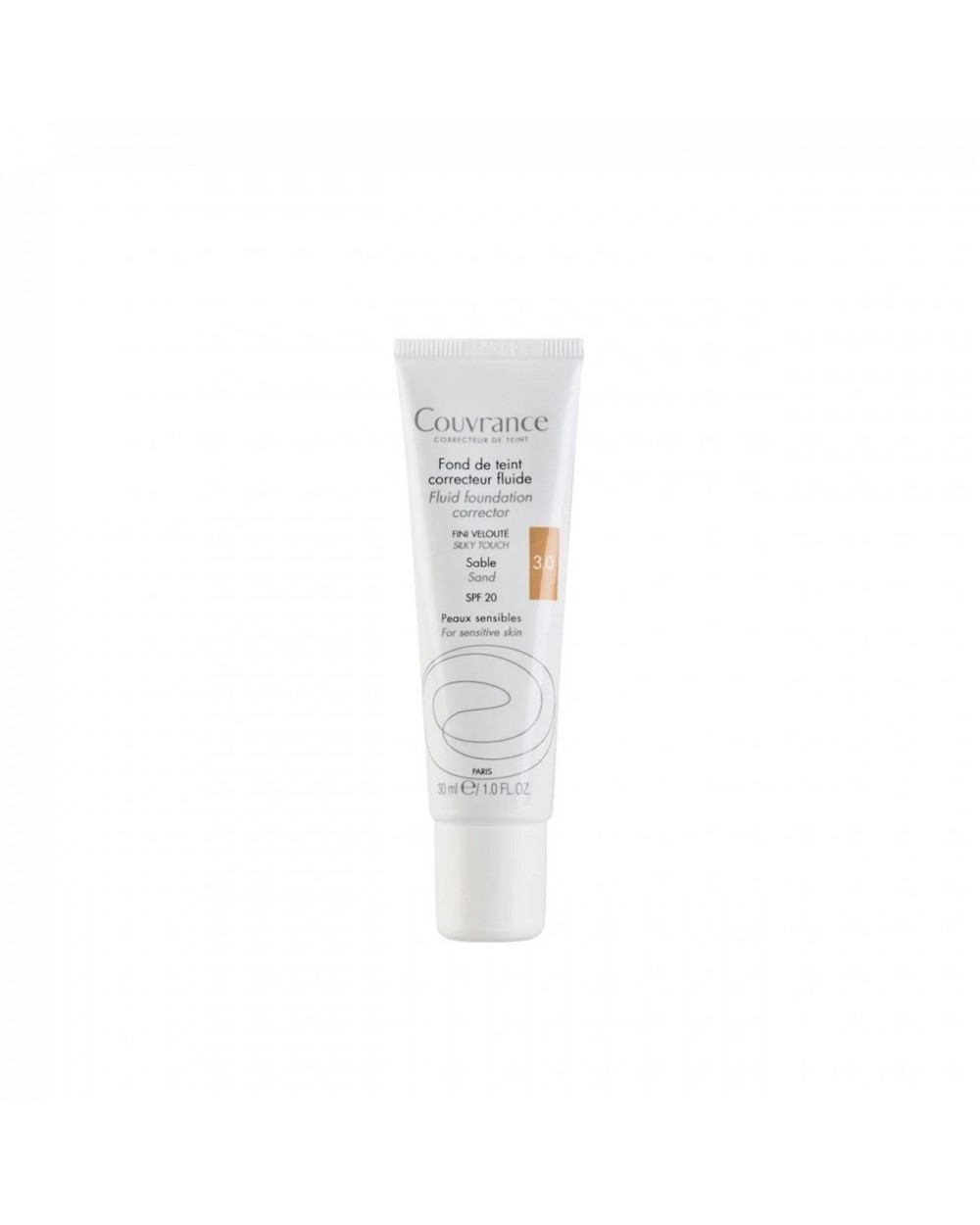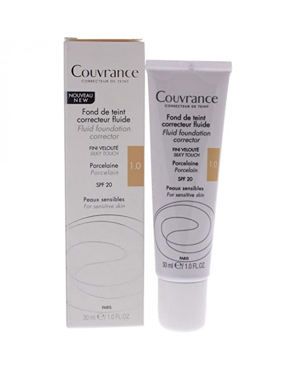 Avène Couvrance Fluid Foundation Corrector 1.0 Porcelain 30ml is a corrective liquid foundation suitable for all skin types.