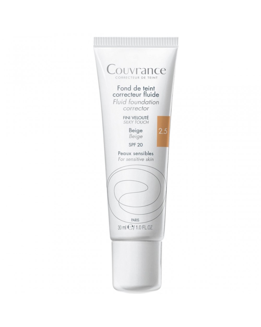 Avène Couvrance Fluid Foundation Corrector 2.5 Beige 30ml is a corrective liquid foundation suitable for all skin types.