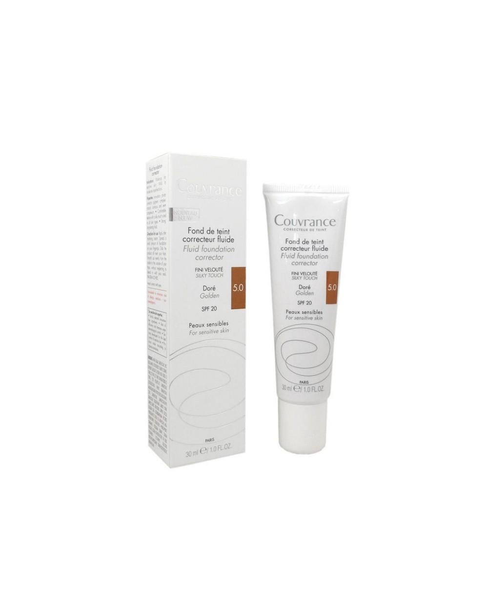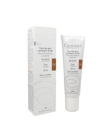 Avène Couvrance Fluid Foundation Corrector 5.0 Golden 30ml is a corrective liquid foundation suitable for all skin types.