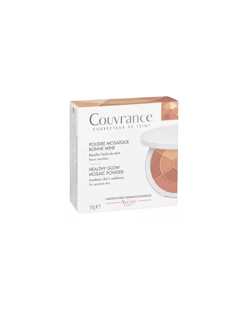 Avène Couvrance Powder Mosaic Brightness helps set the make-up and unify the complexion. This powder with corrective tones (green, purple, white, and beige) fixes the make-up and evens the complexion. Resistant to water and perspiration, it is ideal for a radiant and fresh make-up or to define the contours of the face.