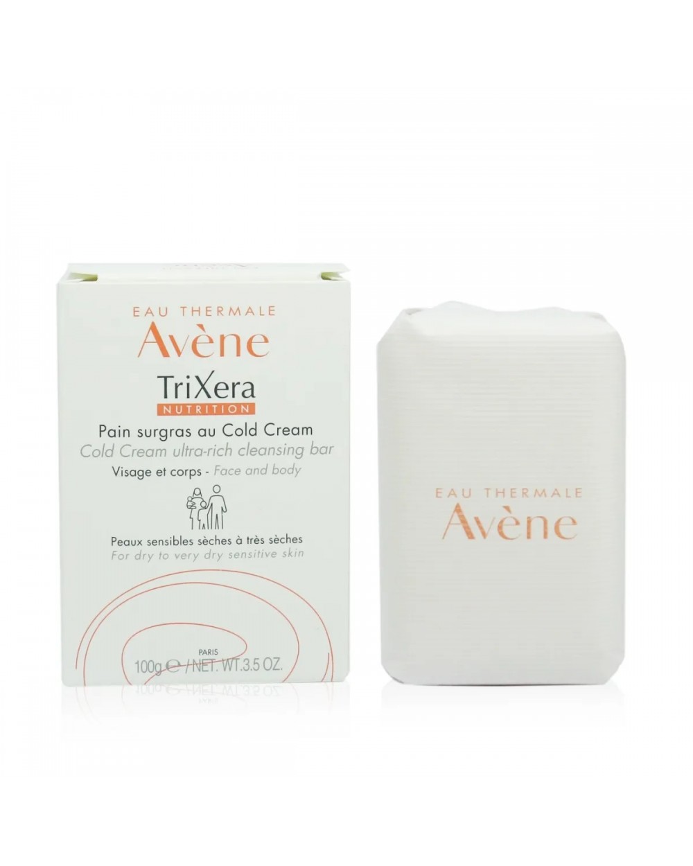Avène Trixera Cold Cream Ultra-Rich Cleansing Bar is a deeply moisturizing cleansing bar, especially formulated for the needs of normal to dry skin types. Enriched with Avène Thermal Spring Water, which is known for its soothing and softening properties, and white beeswax, which protects the skin from environmental aggressions, this formula gently cleanses the skin without stripping it of its natural oils. The skin is intensely nourished and hydrated, even in the driest areas of the body, such as the elbows and knees.