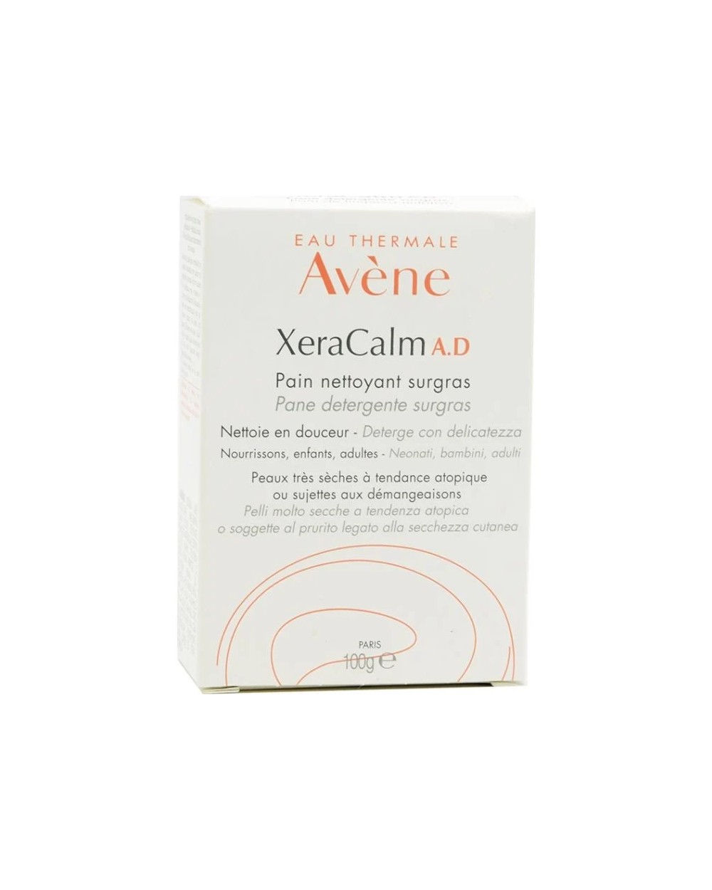 Avène Xeracalm A.D. Pain is an ultra-rich cleansing bar suitable for the dry skin of newborns, children, and adults.