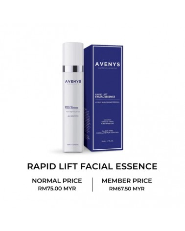 Apply AVENYS Rapid Lift Facial Essence straight after you cleanse your face and dab dab dab until its fully absorbed into your skin.