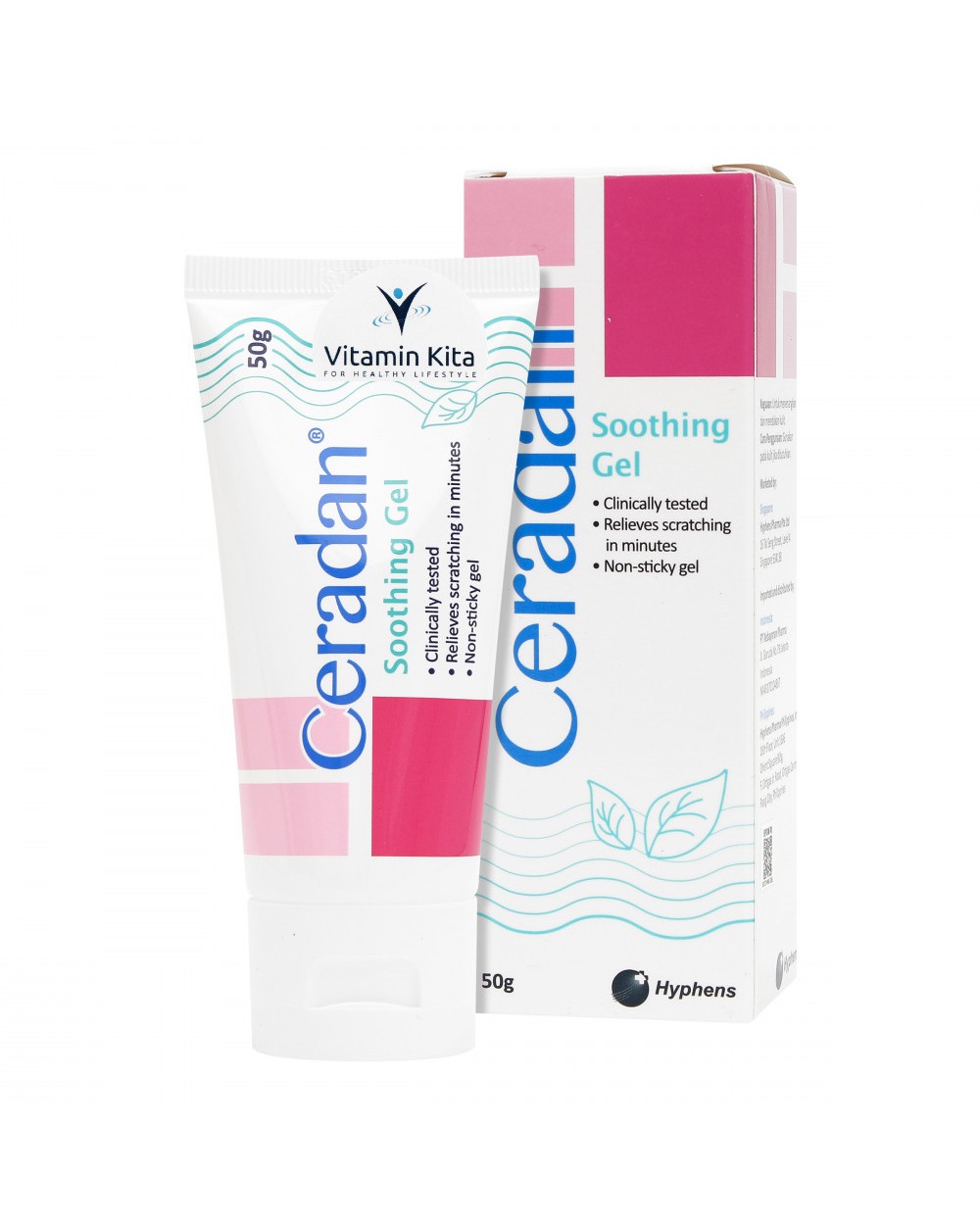 Ceradan® Soothing Gel is a unique gel preparation that is clinically proven to provide rapid itch relief in 5 minutes and easy application. Contain menthol which provides a cooling sensation for itch relief without unbearable smell and stinging sensation. Calms and soothes the skin. Suitable for all skin types, including eczema-prone skin.