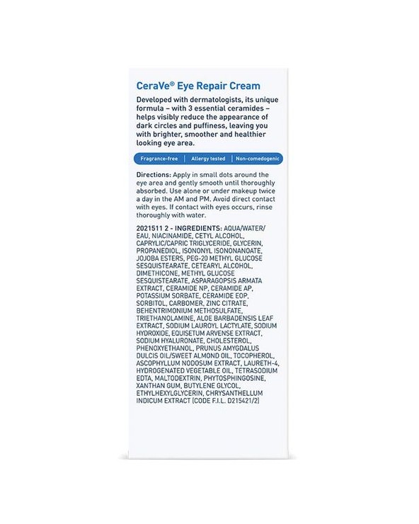 - * Apply CeraVe Eye Repair Cream in small dots around your eye area