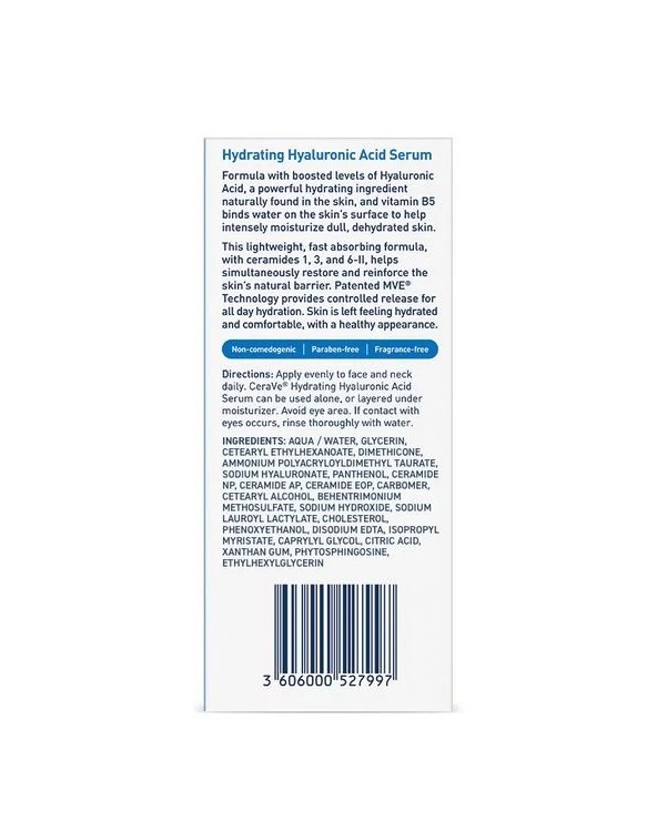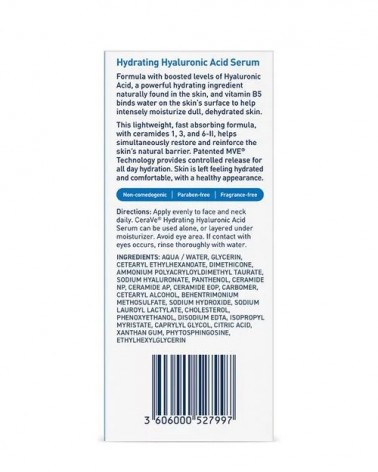 - * CeraVe Hydrating Hyaluronic Acid Serum can be used alone, or layered under moisturizer