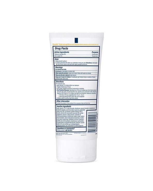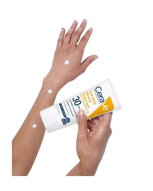 Ideal for protecting your skin from the sun, CeraVe Hydrating Mineral Sunscreen Body Lotion with Broad Spectrum SPF 30 is an oil-free, 100% mineral sunscreen formulated with titanium dioxide and zinc oxide that forms a barrier on your skin to help reflect the sun’s UVA and UVB rays. With minimal risk of irritation in sensitive and all other types of skin, our formula is enhanced with three essential ceramides to help restore skin’s natural barrier and lock in moisture for all-day hydration. It has also been awarded the National Eczema Association Seal of Acceptance and the Skin Cancer Foundation Daily Use Seal of Approval.