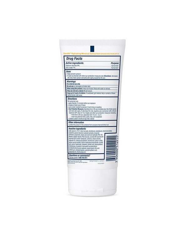 Protect your skin from the sun's damaging rays without irritation. CeraVe Hydrating Mineral Sunscreen Body Lotion with Broad Spectrum SPF 50 is a 100%-mineral sunscreen with titanium dioxide and zinc oxide that forms a protective barrier on your skin to help reflect UVA and UVB rays without irritating sensitive skin. Ideal for daily use, it also has three essential ceramides that help restore the skin’s natural barrier and lock in moisture. It's been awarded the National Eczema Association Seal of Acceptance and the Skin Cancer Foundation Daily Use Seal of Approval.