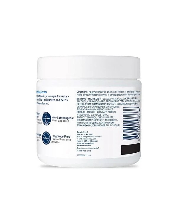 CeraVe Moisturizing Cream is a rich, non-greasy, fast-absorbing moisturizer for normal to dry skin on the face and body. Formulated with three essential ceramides, it works to lock in skin's moisture and help maintain your skin’s protective barrier. Our moisturizing cream also features hyaluronic acid, petrolatum, and MVE Delivery Technology—which works by continually releasing moisturizing ingredients for long-lasting hydration. Developed with dermatologists, this barrier-restoring cream is gentle on skin, fragrance-free, and accepted by the National Eczema Association.