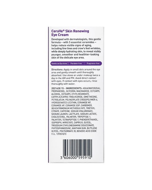 - * Apply CeraVe Skin Renewing Eye Cream twice a day, as part of your day and night skincare routines, after cleansing