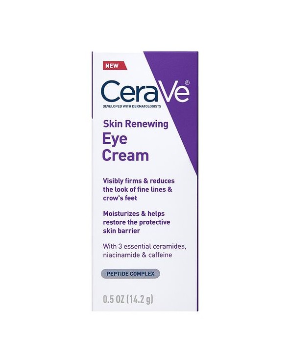 Adding an anti-aging eye cream to your skincare regimen is a great way to help minimize visible signs of aging around the delicate eye area. CeraVe’s Skin Renewing Eye Cream, which was developed with dermatologists, visibly firms and reduces the look of fine lines, crow’s feet wrinkles, puffiness, and dark circles around the eyes. Featuring an anti-aging peptide complex, hyaluronic acid, niacinamide, ceramides, and caffeine, this multi-tasking eye wrinkle cream helps to reveal firmer skin and visibly brighten tired-looking eyes.