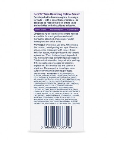 Retinol is an essential ingredient in any anti-aging skincare routine. A retinol serum is an effective product for improving the appearance of fine lines, wrinkles, skin texture and radiance.When looking for a face serum to add to your skincare routine, look for ingredients like ceramides that help restore and protect your skin barrier. It may take some time for your skin to adapt to retinol, so plan to slowly work your way up to daily use to avoid skin irritation. To help your skin look and feel its best, look for a face serum formulated with hydrating and calming ingredients like hyaluronic acid and niacinamide.