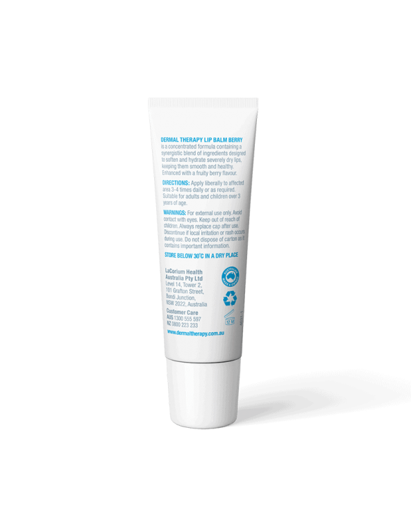 Dermal Therapy Lip Balm Berry brings a fruity fresh flavour to soothing and hydrating lip care.