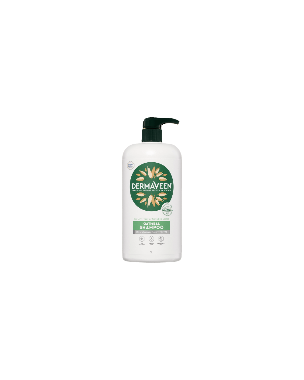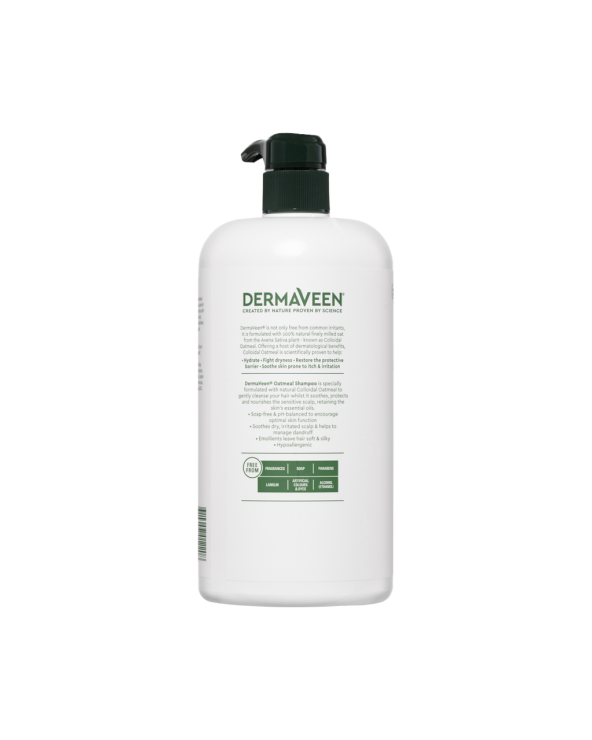 DermaVeen Oatmeal Shampoo for dry, flaky and sensitive scalps is dermatologically tested, pH balanced, paraben-free and fragrance-free.