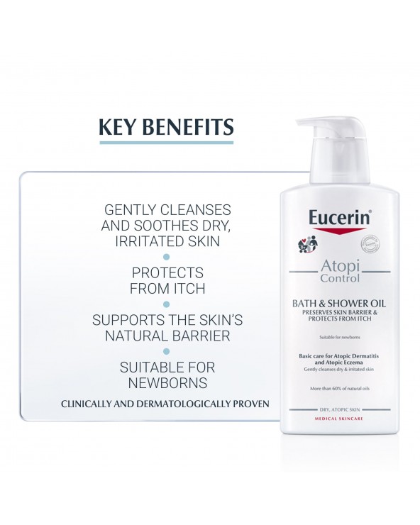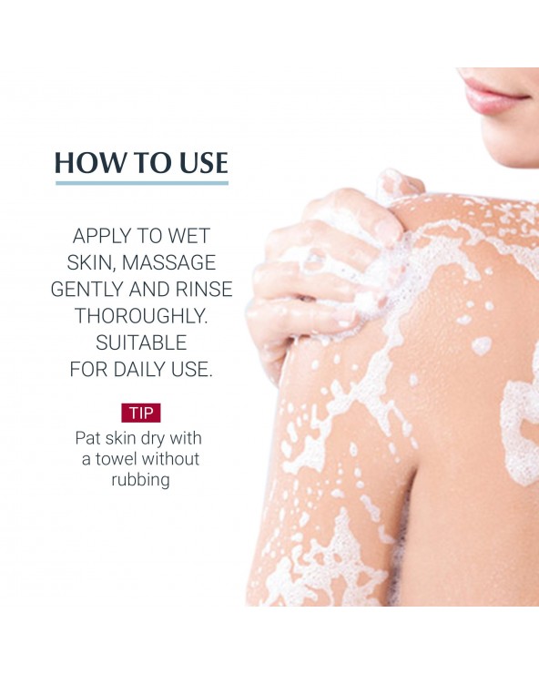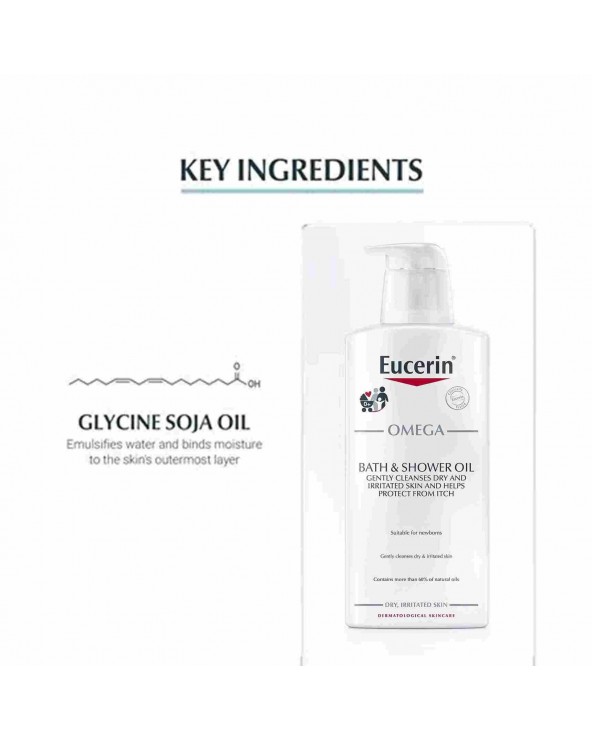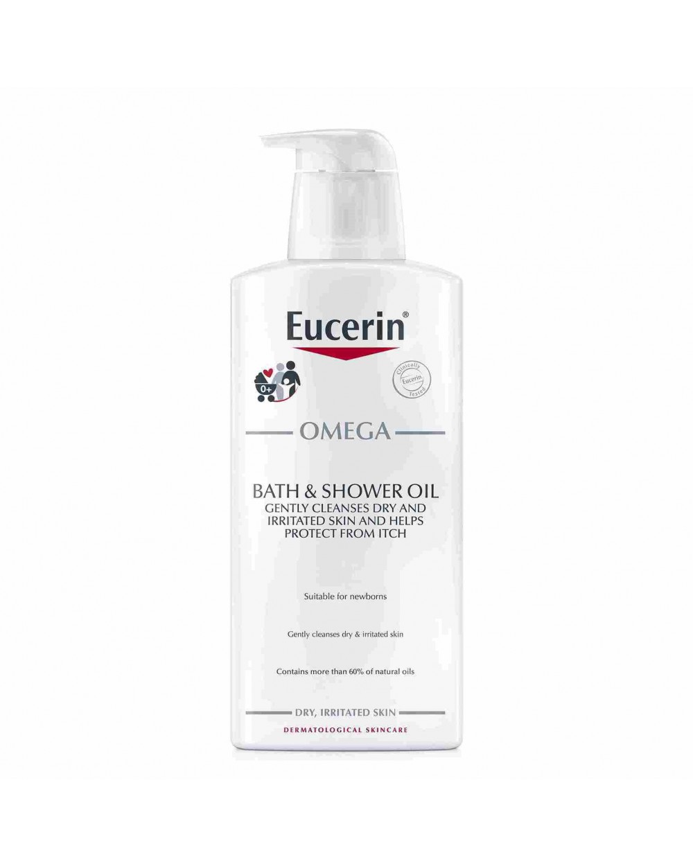 - Apply Eucerin OMEGA Bath and Shower Oil to wet skin
