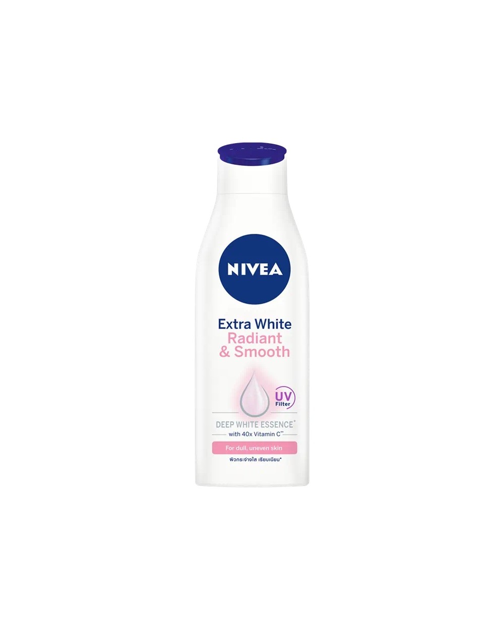 NIVEA Extra Bright Radiant & Smooth body lotion is a brightening body cream that contains unique combination of Deep Bright Essence, helps brighten your skin and moisturizes dry skin for noticeably bright and smoother skin that you can feel. It has UV filter to protect skin from UV Rays, 40x Vitamin C that helps to brighten skin and Deep Bright Essence that deeply repair and moisturize skin from deep within. Get radiant and smoother skin with NIVEA Radiant & Smooth body lotion. This product comes in a practical pump bottle for easy usage