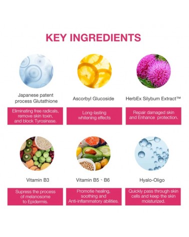 The all new Glutalight formula combines Glutathione, Vitamin C Glucoside, Vitamin B3 and Silybum marianum Extract which can effectively decrease the appearance of pigmentation and lighten dull and uneven skin tone. In addition, this contains Hyaluronic Acid to facilitate hydration, hence creating radiant and healthy skin. It is suitable for facial treatment aftercare.