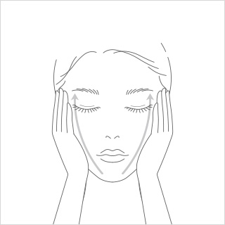 Following the illustration, press palms against cheeks and lift from chin to temple. Repeat three times.