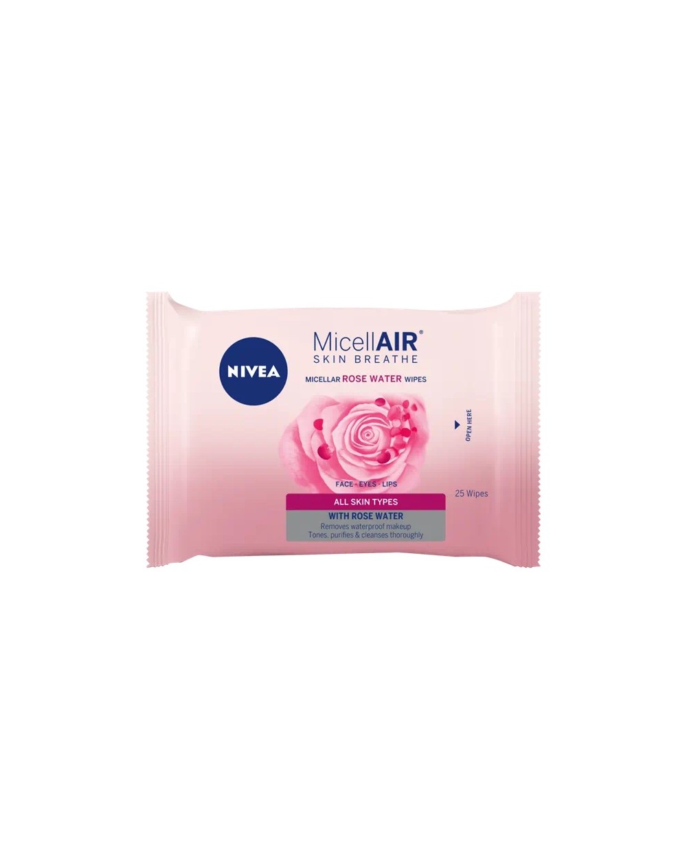 NIVEA ROSE CARE MICELLAR WIPES infused with Organic Rose Water: 1. Gently removes waterproof make-up without rubbing or rinsing 2. Cleanses thoroughly, purifies and tones the skin without drying out 3. Provides immediate moisturization and retains moisture.