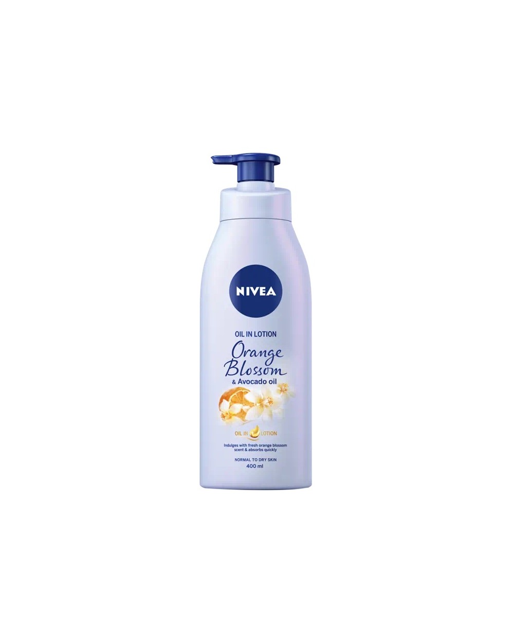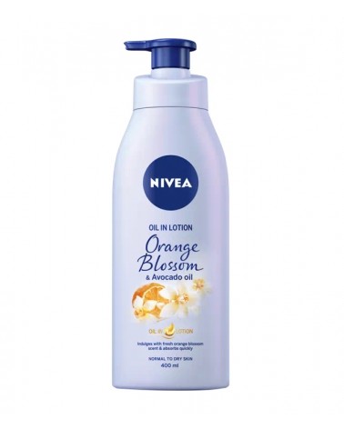 NIVEA Oil in Lotion Orange Blossom & Avocado Oil Body Lotion has been developed with your normal to dry skin in mind. Its formulated with precious Avocado Oil carefully blended in a fast absorbing lotion to nourish. Awaken your senses with a refreshing orange blossom scent and deeply moisturise your skin without greasy residue. Enjoy a delicately, fresh and energizing orange blossom scent. For 24h+ deep moisture with no greasy feeling. Transforms dry skin into smooth, radiant skin.