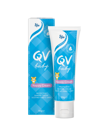 QV Baby Nappy Cream is a soothing, rich formula that helps to protect delicate skin against irritation. It forms a barrier that shields baby’s skin from water, detergents, chemicals and other common irritants. QV Baby Nappy Cream’s non-sticky, non-greasy, low-irritant formulation and moisturising ingredients also help to rehydrate skin and prevent moisture loss from baby’s skin.