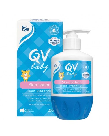 QV Baby Skin Lotion is a lightweight moisturising lotion, designed to help soothe and relieve dry skin. This fragrance-free formulation is fast-absorbing and is designed for baby’s dry, delicate or sensitive skin.