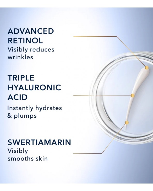 Developed with Dermatologists and Plastic Surgeons, this hydrating face serum contains Triple Hyaluronic Acid, a complex of three forms of Hyaluronic Acid, to instantly plump your skin and fill in the look of wrinkles so they’re less noticeable in the mirror. Over time, pure RoC®Retinol and Swertiamarin provide lasting improvements to deliver visibly younger-looking skin.