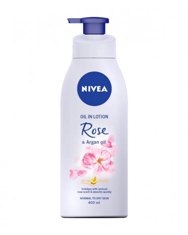 NIVEA Oil in Lotion Rose & Argan Oil lets you experience the including care of oils in a lotion that quickly absorbs into your skin without leaving greasy residue. The delicately scented lotion indulges your senses with the fragrance of rose and cares for your skin with more than 24 hours of deep moisture. Your skin is left feeling irresistibly smooth to the touch and beautifully radiant. The skin compatibility of this oil in lotion has been dermatologically approved.