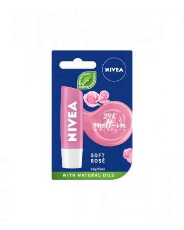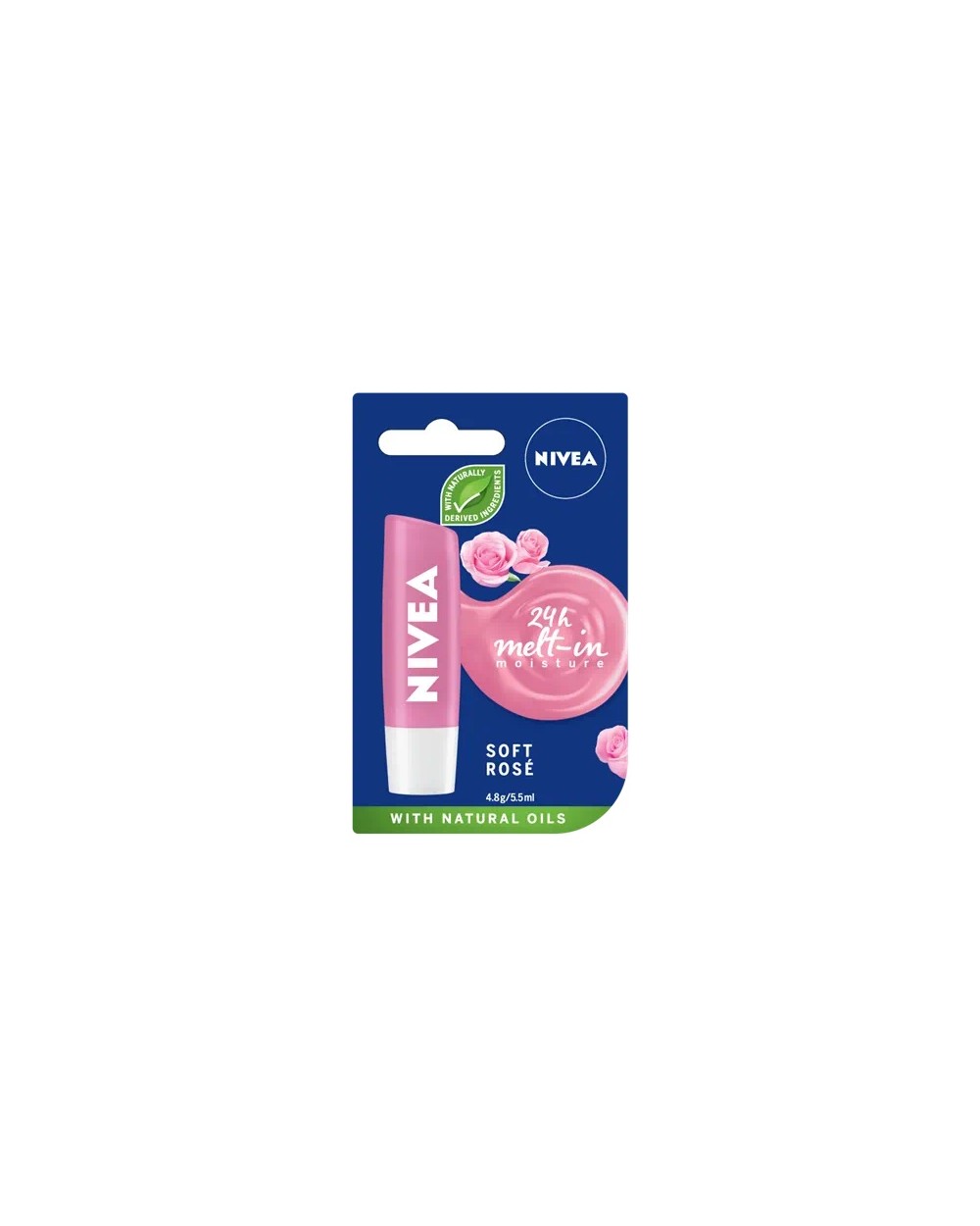 NIVEA Soft Rose Caring Lip Balm provides your lips with deep moisturization, all day. The unique formula is enriched with Rose Extract. It instantly melts into your lips and keeps them moisturized for 24 hours* while underlining the natural rosiness of your lips. Enjoy beautiful rosy and pleasantly soft lips all day! The skin compatibility of this caring lip balm has been dermatologically approved –& the lip balm is free of mineral oils. *Clinically tested