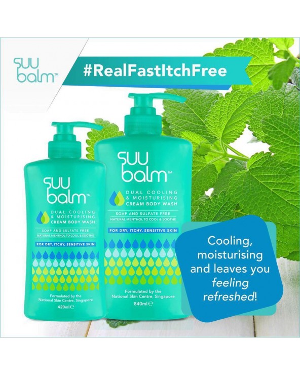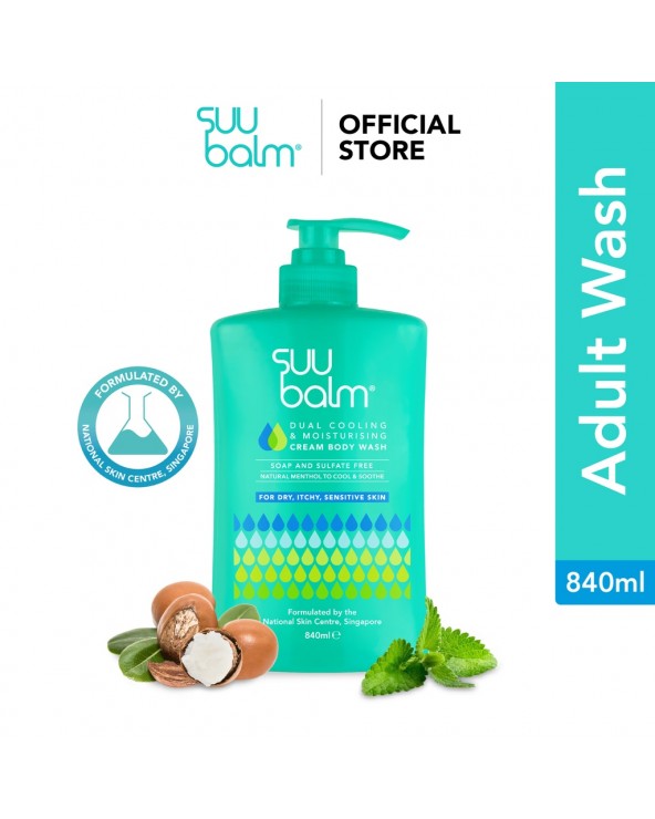 Suu Balm Dual Cooling and Moisturising Cream Body Wash is a gentle, refreshing formulation that’s safe for everyday use on anyone with sensitive and dry skin.
