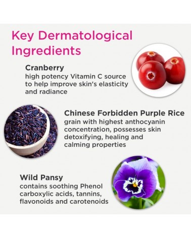 - Cranberry - essential high potency Vitamin C source to help improve skin's elasticity and radiance