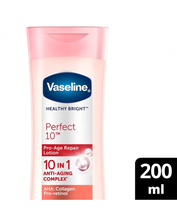 - Vaseline® Healthy Bright Perfect 10™ Pro-Age Repair lotion with Omega-6 technology that delivers 10-in-1 anti-aging skin* benefits for supple, youthful