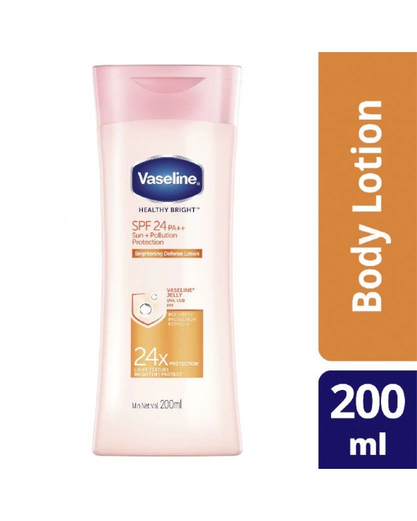- Vaseline® Healthy Bright SPF24 PA++ Brightening Defense Lotion brightens and protects for 2X** brighter skin in just 1 week even under harsh sun